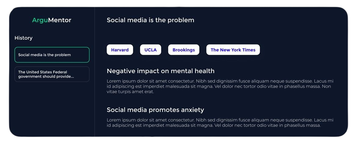 Launched in October 2023, Argumentor quickly became a valuable resource for the debate team. Several members used it extensively to speed up research and familiarize themselves with unfamiliar topics before competitions. By February 2024, the majority of the team transitioned to using Microsoft Copilot for similar purposes, having experienced the benefits of Argumentor's approach to AI-assisted research.